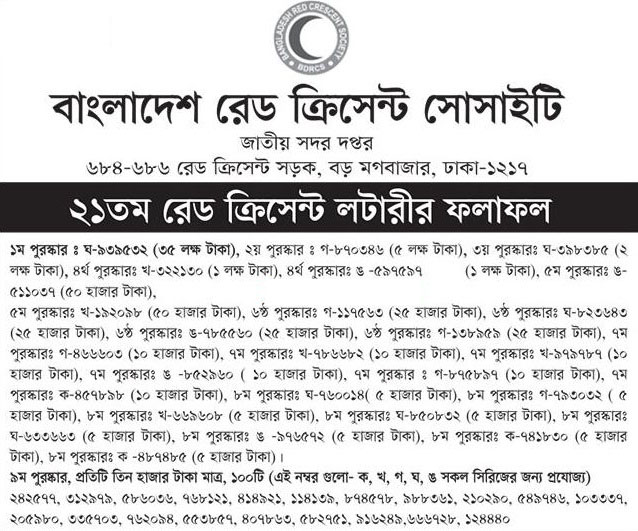 20Tk Bangladesh Red Crescent Society Lottery 2017